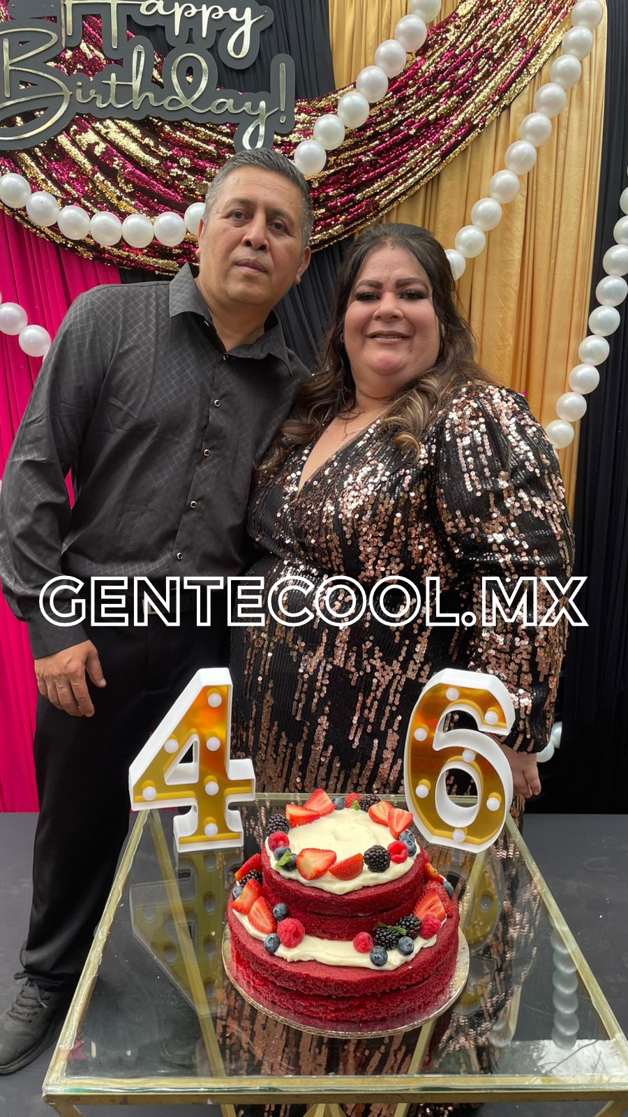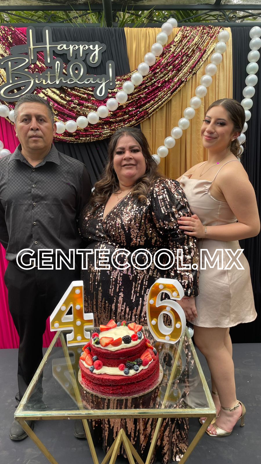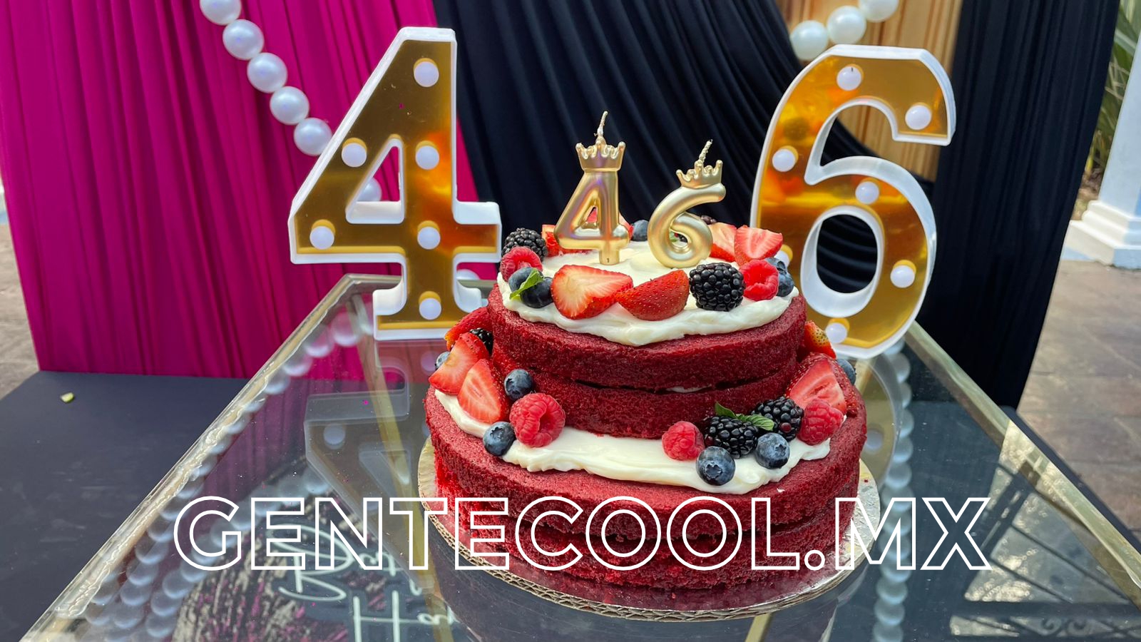 Un rico pastel red velvet con frutos rojos y crema chantillí coronados con velitas, anunciaba los fabulosos 46 años de vida de las gemelas.