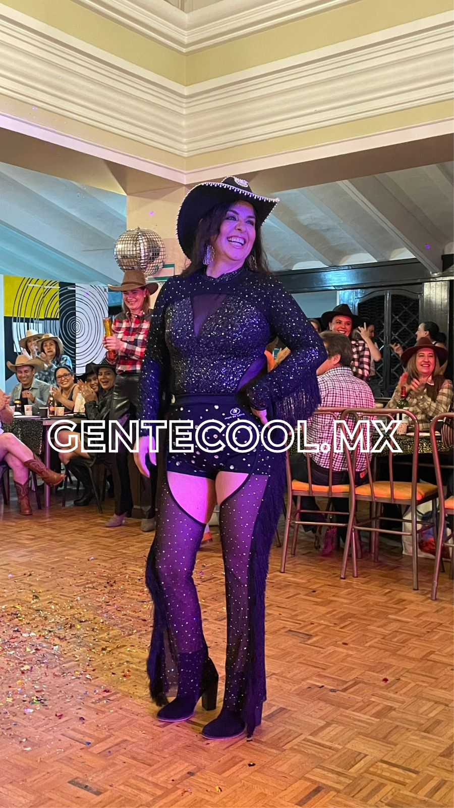 Sexis mujeres enfundadas en pantalones de mezclilla con blusas de estampados y sombreros acompañados de botas altas, hombres en el mismo look sin olvidar los sombreros hicieron acto de presencia en la noche llena de música.